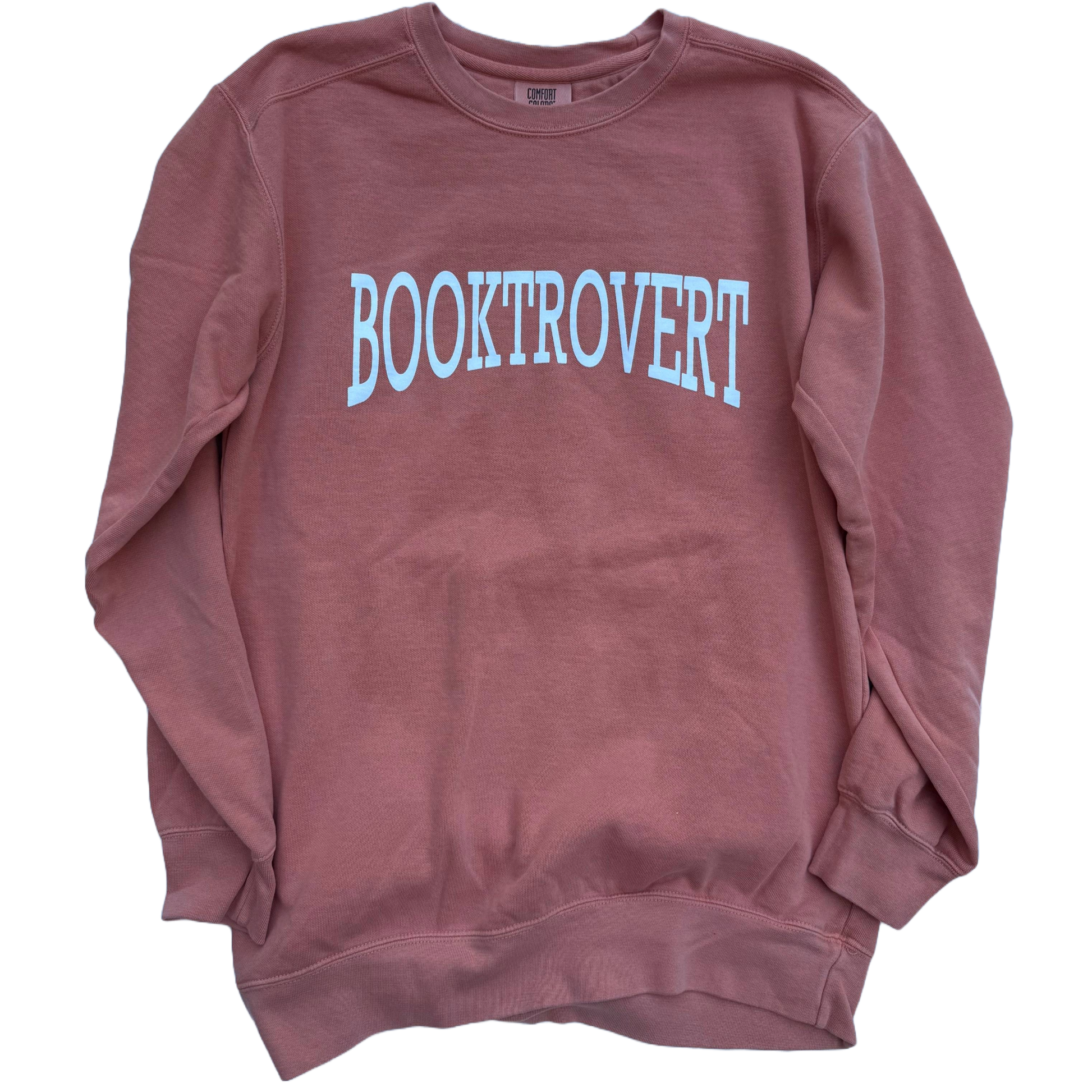 You’ll love our relaxed fit, BOOKTROVERT sweatshirt in terracotta. On the back: I think I’ll stay home and read my book.